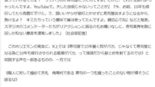 嫌儲 実業家のホリエモンこと堀江貴文氏、10年ぶりに寿司屋ディス「ブサイク・頭悪い・家貧乏」