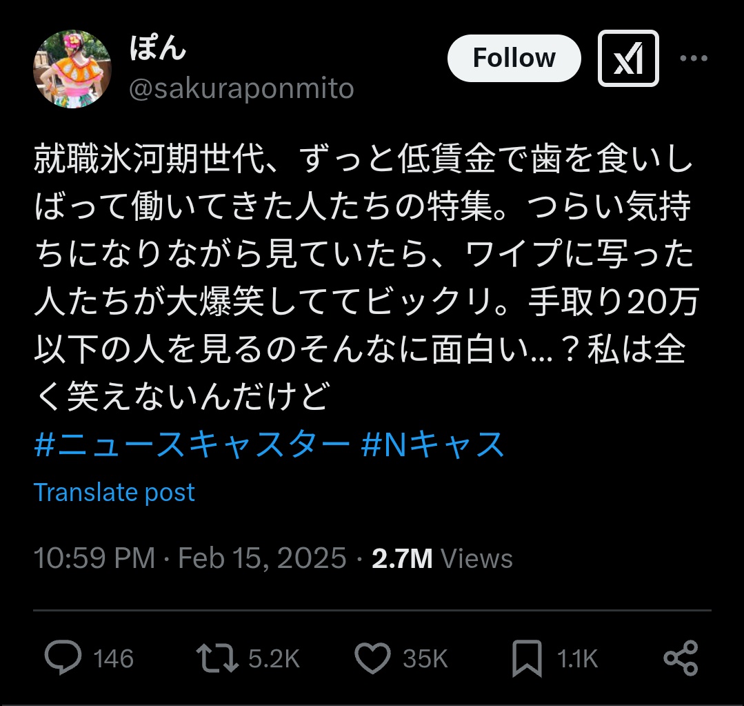 TBSのコメンテーター、氷河期世代特集で爆笑してしまい炎上🔥