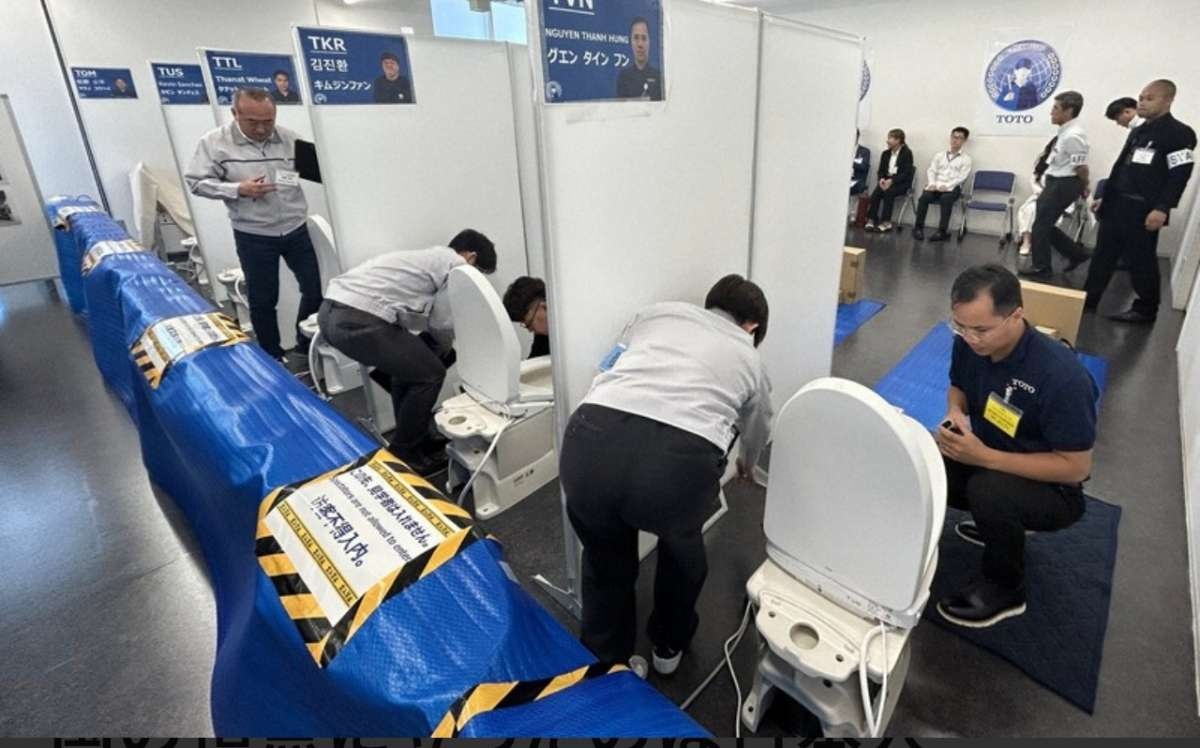TOTOのウォシュレットは米国を始め、世界的に売り上げが好調。大会は、修理技術や対応スキルをグローバルレベルで向上を目指し2023年から「ワールドサービスマスターズ」と銘打って開催している。2回目となる今回は7月29日、北九州市小倉北区のTOTOミュージアムで催された。