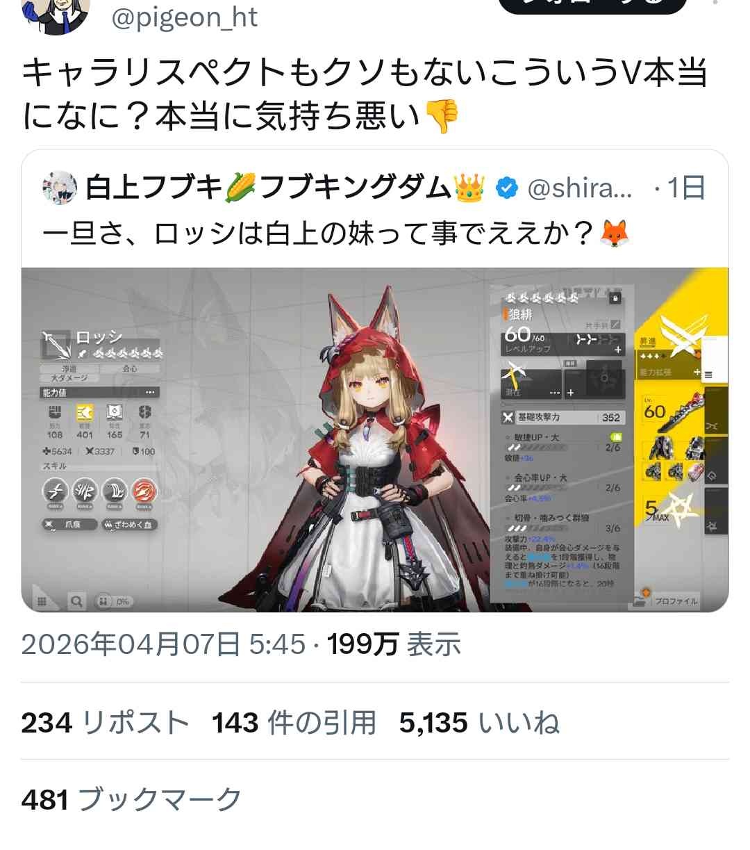 このキャラ好きでV嫌いなら寄ってくんなって思うだろね