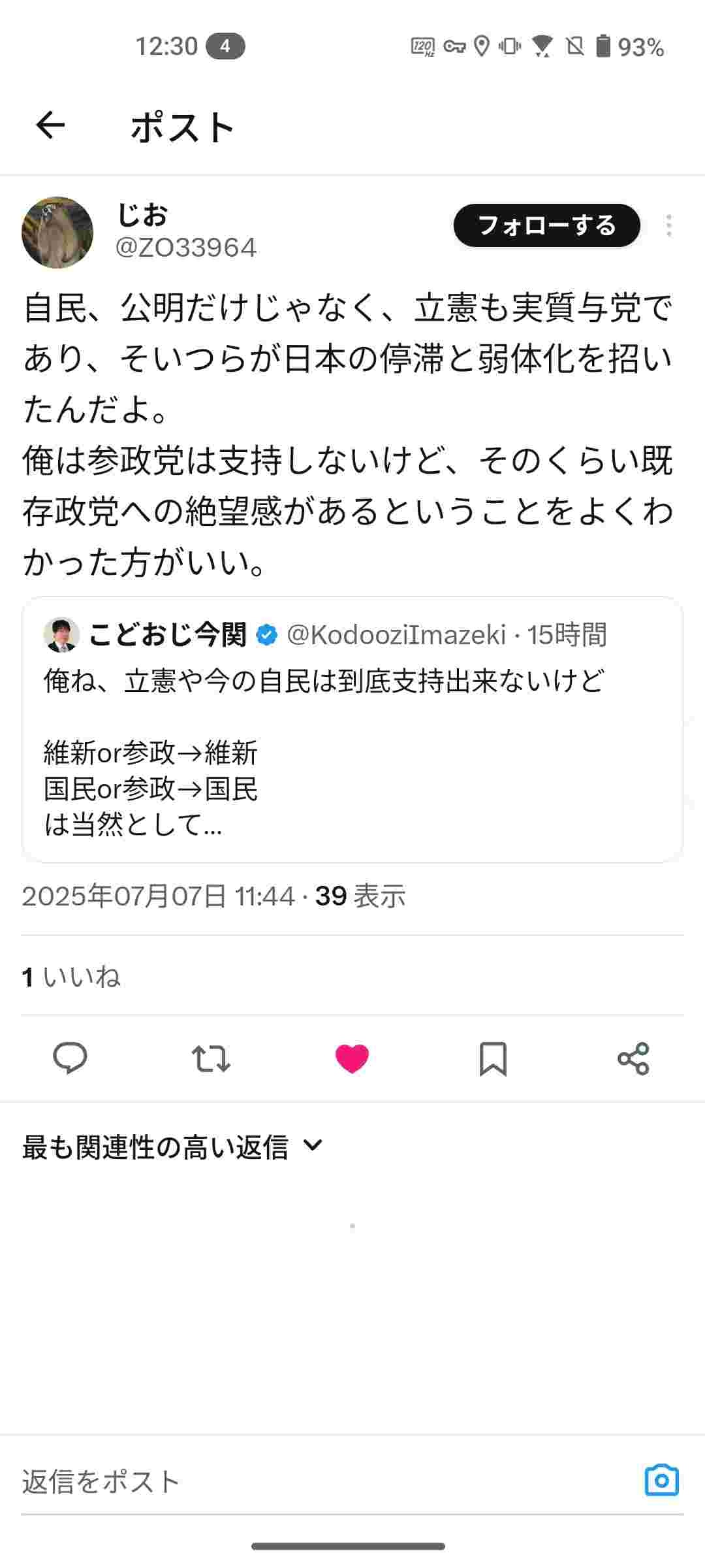 X民「日本の衰退と参政党というモンスターを生み出したのは、自公だけでなく立憲の責任も大きい」😲