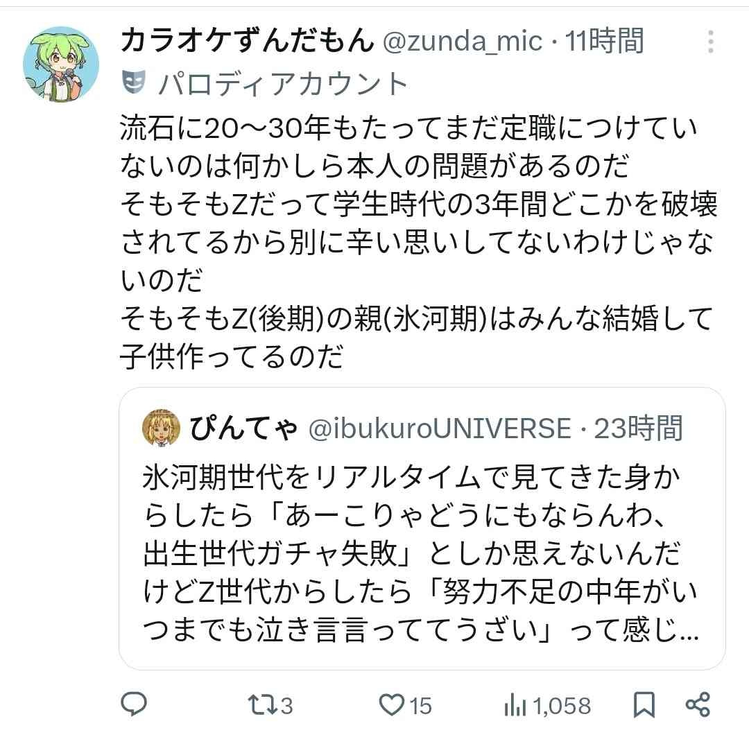 Zがもっと社会参加するようになったら氷河期は殺処分されそうだな