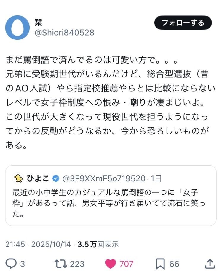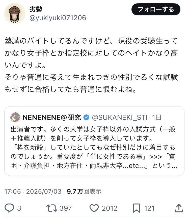 どうせ女子枠なんか無くても社会から零れ落ちる連中や